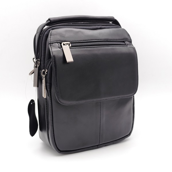 Мъжка чанта от естествена кожа с капак и горен цип
