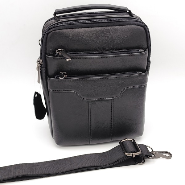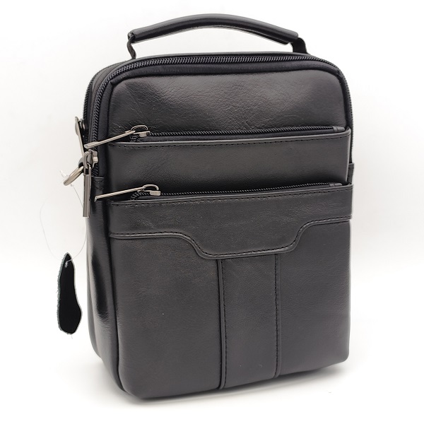 Мъжка чанта от естествена кожа за през рамо черна с много отделения