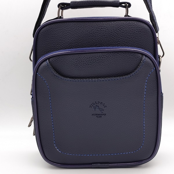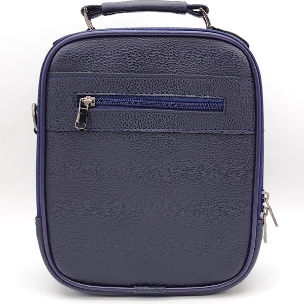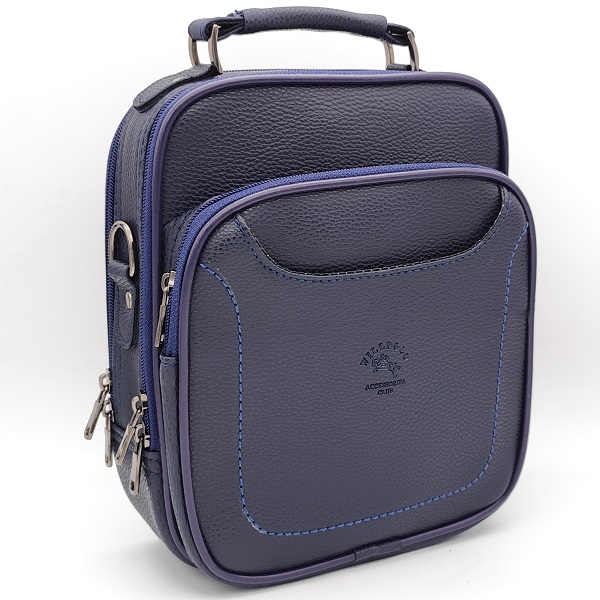 Мъжка чанта от еко кожа в тъмносин цвят с обемен преден джоб и два ципа