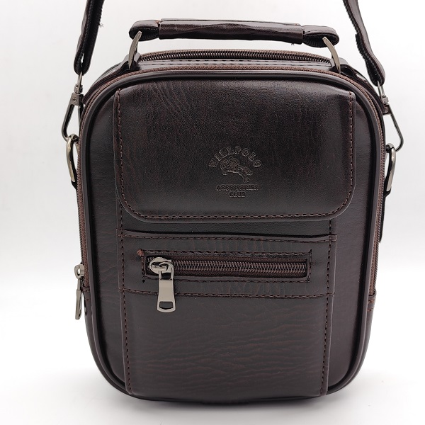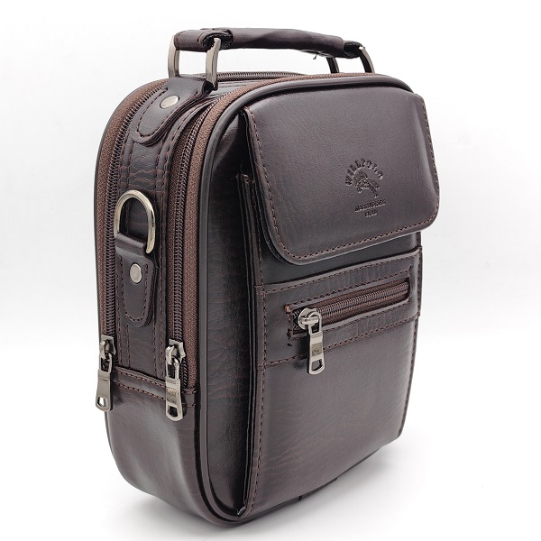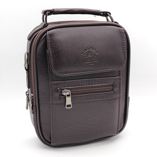 Мъжка чанта от висококачествена еко кожа в кафяв цвят с капак и преден цип Will Polo
