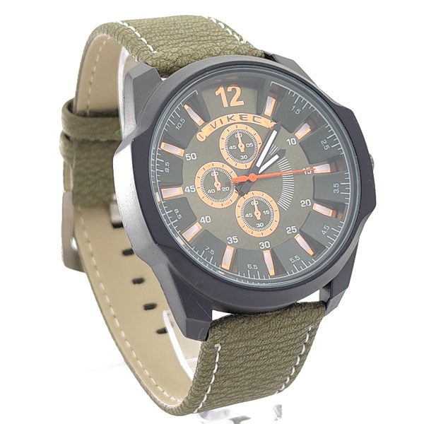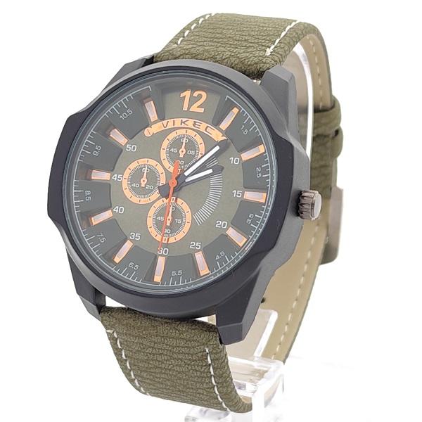 Мъжки аналогов часовник със зелена кожена каишка