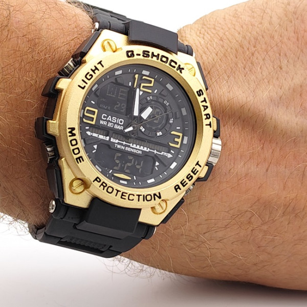 Мъжки спортен часовник реплика със златист корпус и LED дисплей