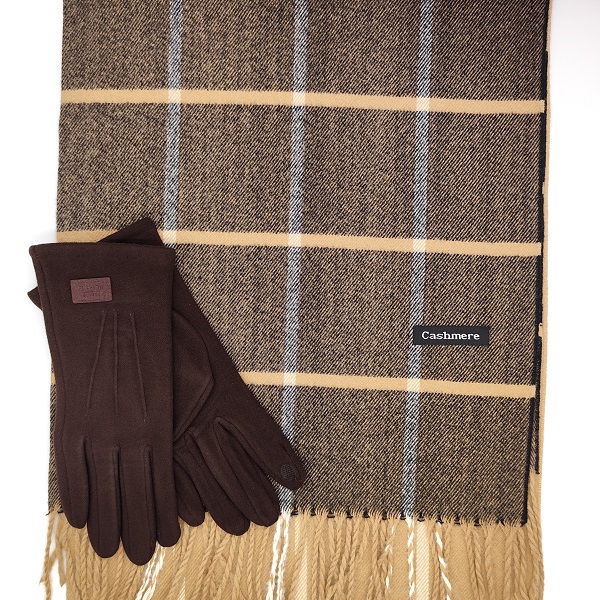 Шал и ръкавици в кафяво и бежово – елегантен мъжки зимен комплект