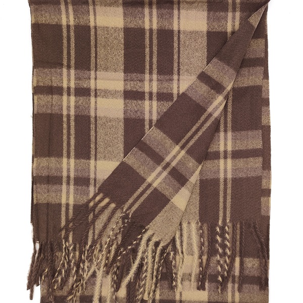 Мъжки зимен комплект – кашмирен шал в кафяво каре, шапка и луксозни ръкавици