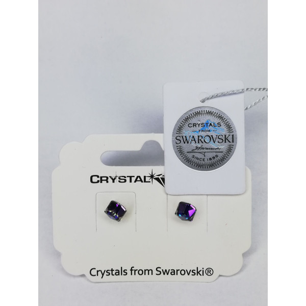 Малки обеци кристали SWAROVSKI кубче heliotrope