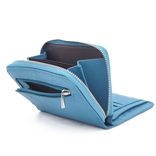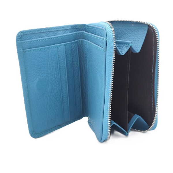 Малко дамско портмоне от естествена кожа с магнитно закопчаване синьо