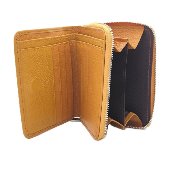 Ако искате да внесете свежест и цвят в ежедневието си, това дамско портмоне от естествена кожа в топъл жълт нюанс е вашето бижу. Съчетавайки удобство, сигурност и отличителна визия, този модел ще стане незаменим спътник в чантата на всяка модерна и уверена жена. Изработено от мека и устойчива естествена кожа, портмонето е не само красиво, но и създадено да издържи на времето и ежедневната употреба.