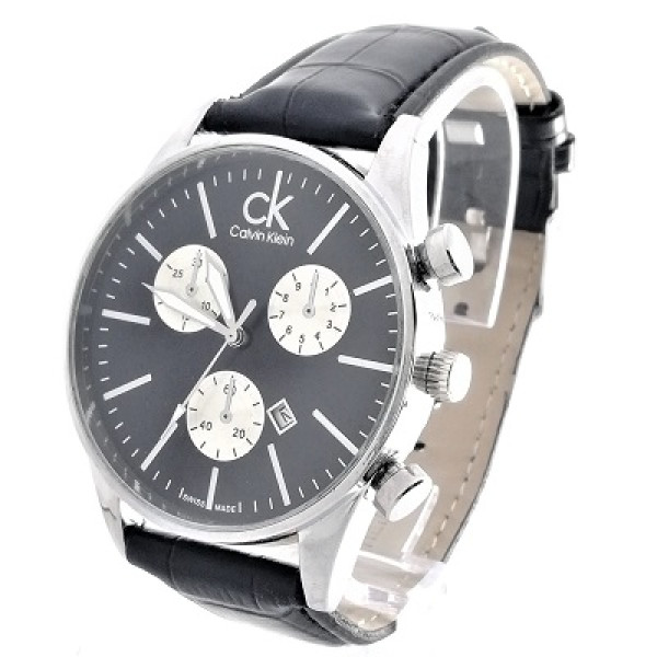Стилен мъжки часовник с мека кожена каишка в черен цвят.