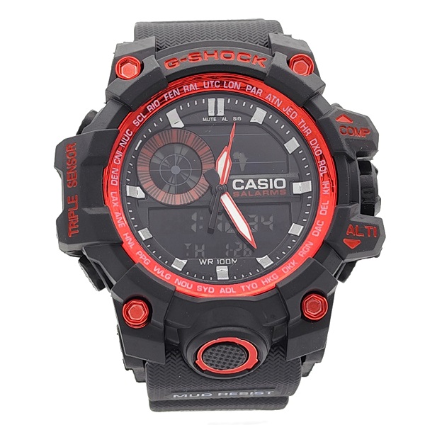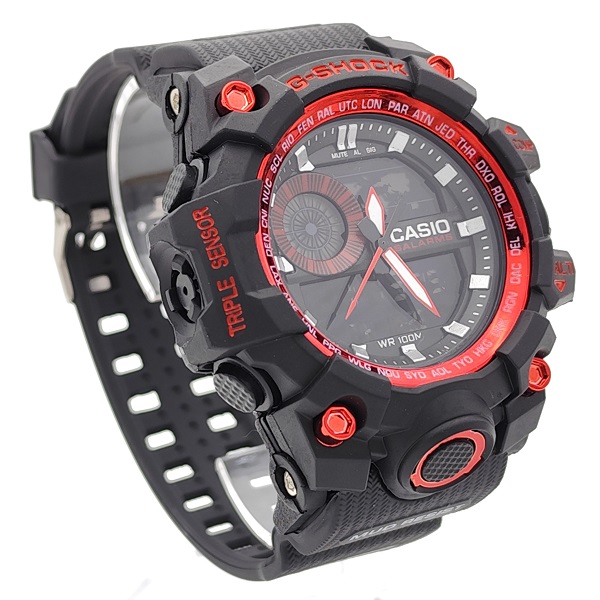 Мъжки часовник реплика с впечатляващ спортен дизайн в черно и червено. Подходящ за активни мъже, които обичат масивните и функционални модели часовници.