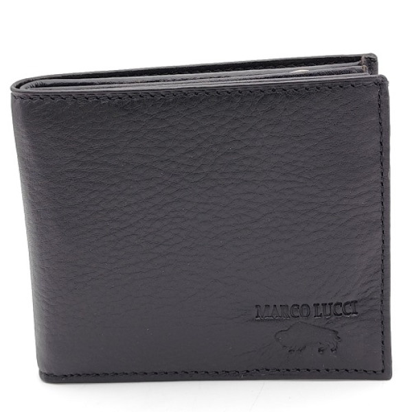 Класически мъжки портфейл от естествена телешка кожа в черен цвят, съчетаващ удобство и практичност. Моделът е от серията маркови мъжки портфейли Marco Lucci, подходящ за всекидневна употреба или като подарък на достъпна цена.