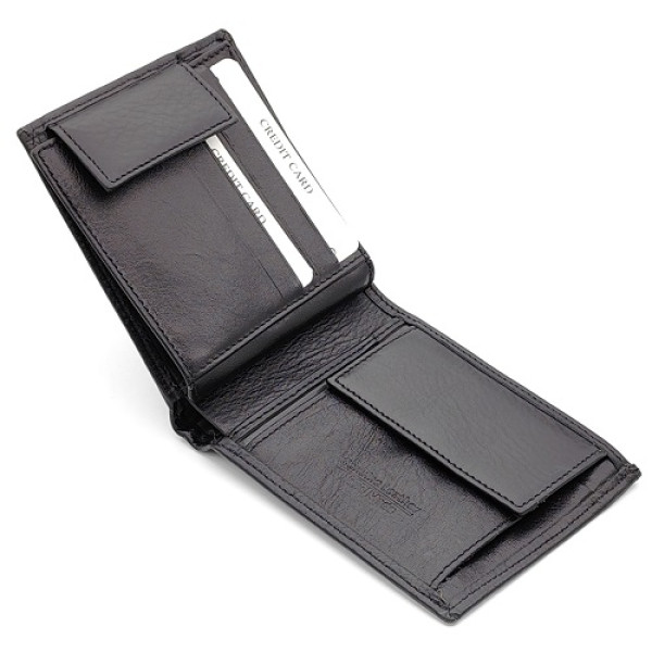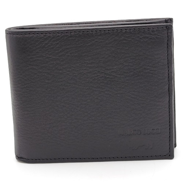 Практичен и стилен мъжки портфейл от естествена телешка кожа в черен цвят. Моделът е част от серията маркови мъжки портфейли Marco Lucci, изработен с високо качество и внимание към детайла.