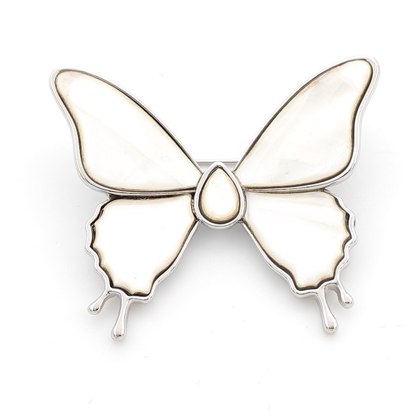 Изключително стилна четирилистна детелина брошка с бял седеф, която носи символика на късмет, щастие и хармония. Венчелистчетата са украсени с нежен бял седеф, а в центъра блести малко бяло камъче, което придава завършеност и блясък. Изработена е от бижутерийна сплав със сребрист обков и закопчаване тип безопасна игла за сигурност и удобство. Подходяща е за палто, сако или шал, като придава изисканост на всяка визия.