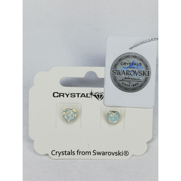 Обеци сърца на винт с кристали Сваровски в бял цвят: White Opal.