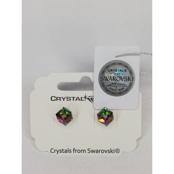 Обеци на винт кристали SWAROVSKI кубче Vitral Medium