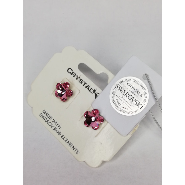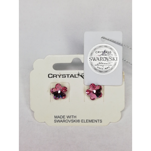 Малки розови обеци Сваровски във формата на цвете идеално шлифовани кристали.