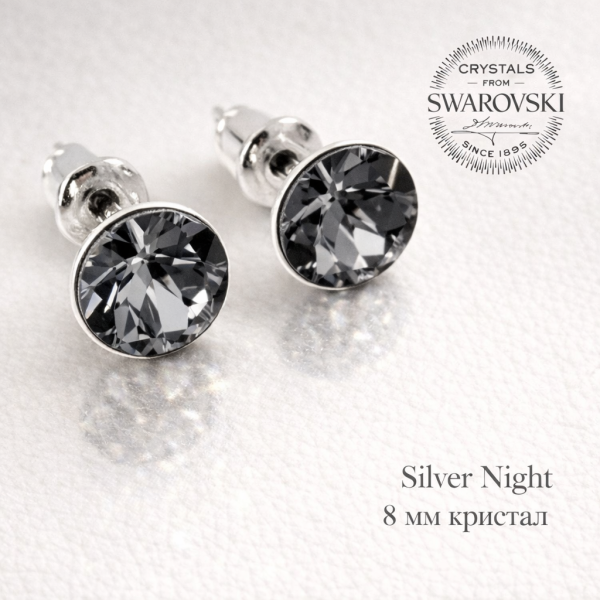 Обеци малки на винт с кристали SWAROVSKI Silver Night