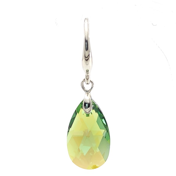 Висящи обеци в зелено кристали във формата на капка