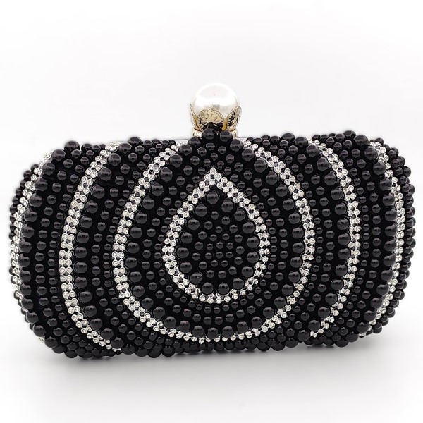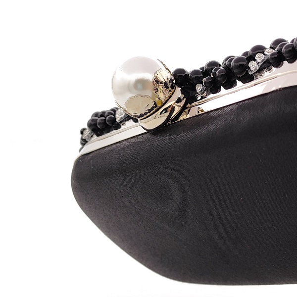 Официална черна чанта с перли и камъни – абитуриентска клъч чанта за бал