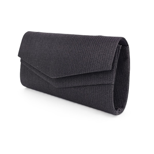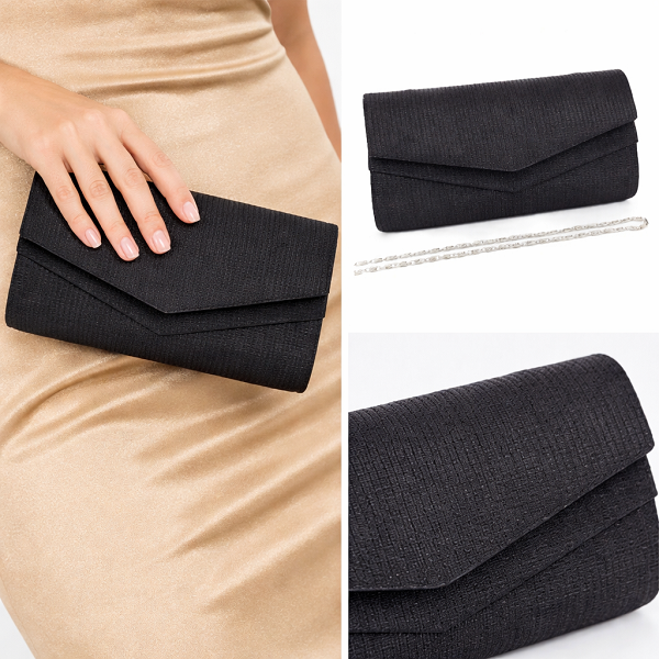 Официална чанта в черно-Черен клъч тип плик с дълъг синджир