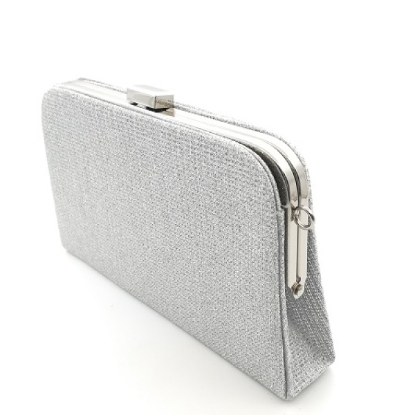 Клъч, официална чанта тип плик сребърна със ситен брокат