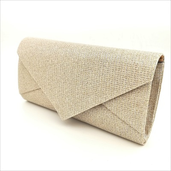 Официална дамска чанта клъч тип плик златиста със ситен брокат