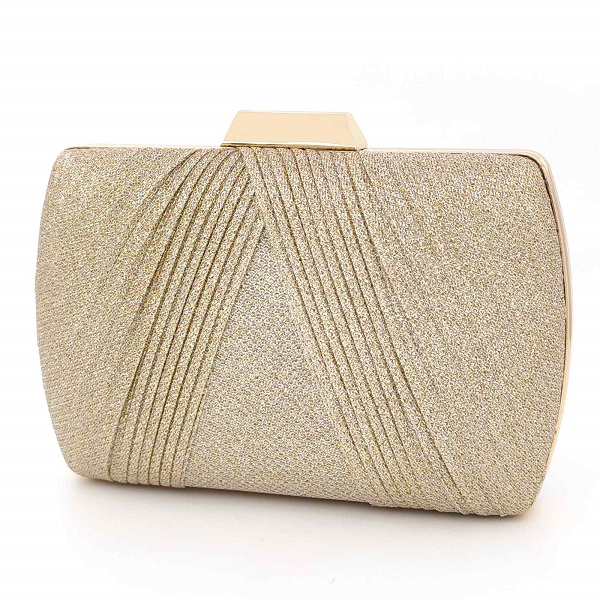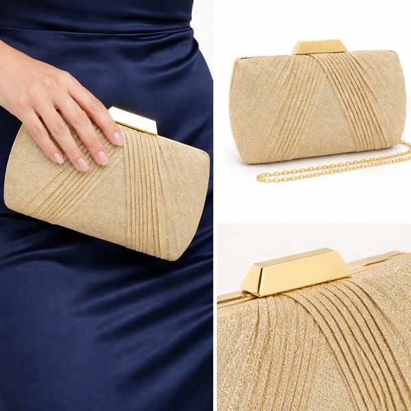 Абитуриентска чанта клъч златиста с брокат и метална закопчалка