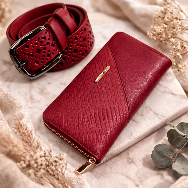 ПОДАРЪЧЕН КОМПЛЕКТ ЗА ЖЕНА КОЛАН И ПОРТМОНЕ ЧЕРВЕН
