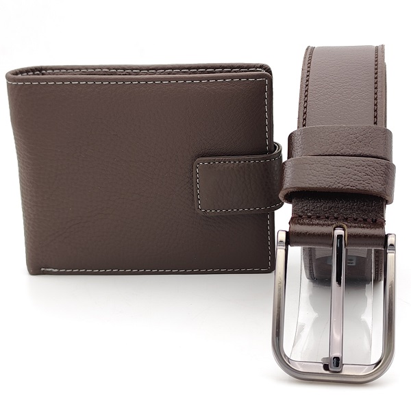 Елегантен комплект колан и портфейл от естествена кожа в стилен тъмно кафяв цвят (Dark Brown) – класически избор за мъже, които предпочитат топлите кожени тонове пред черното. Комплектът съчетава практичност, издръжливост и универсален стил, подходящ за ежедневие и официални поводи.