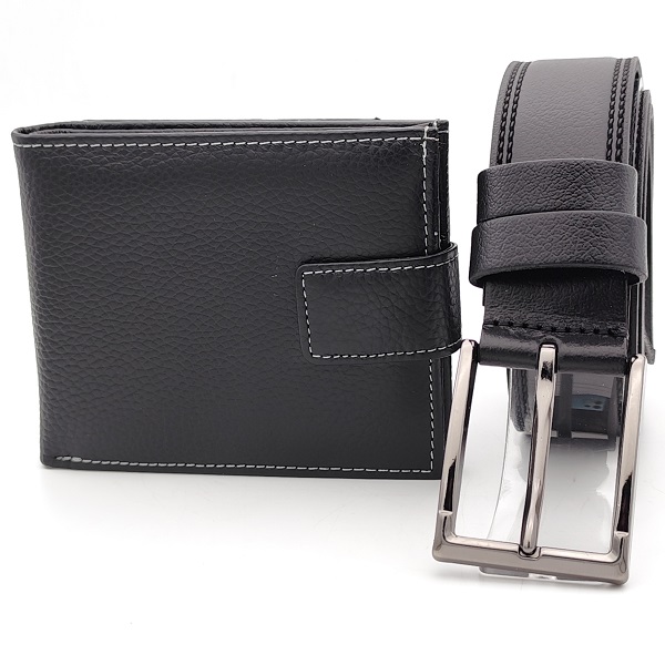 Функционален и стилен комплект колан и портфейл за мъж, подходящ за ежедневие и подарък.