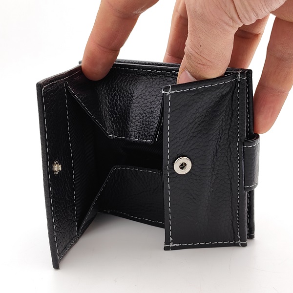 Портфейлът е от естествена кожа с външно магнитно закопчаване и богато вътрешно разпределение – цели 11 отделения за карти и документи, прозрачни джобове и отделения за банкноти. Допълнително удобство осигурява външният джоб за монети на гърба, който позволява бърз достъп.