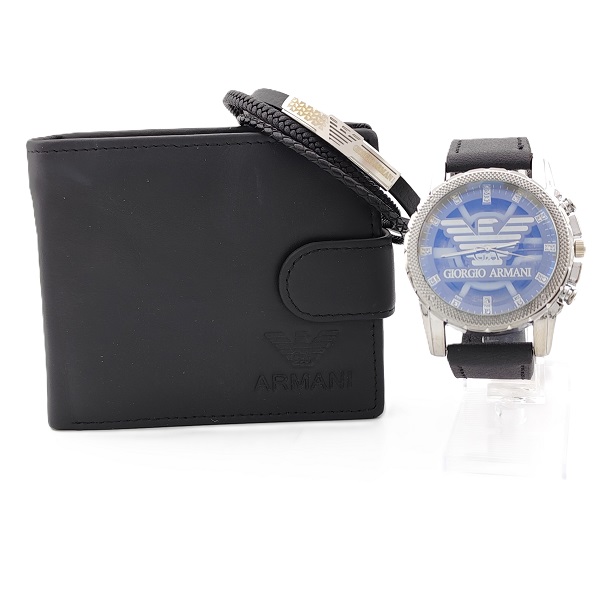 Марков и стилен подарък за мъж, който съчетава три класически аксесоара – часовник, портфейл и гривна. Подходящ за всеки повод, този комплект е отличен избор за мъже, които ценят детайлите и добрия външен вид.