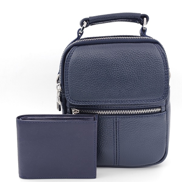 Подарък за мъж – чанта и портфейл в синьо | Подаръчен комплект от естествена кожа