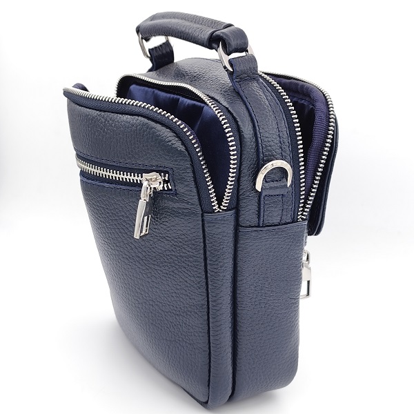 Мъжка чанта от естествена кожа – Син цвят