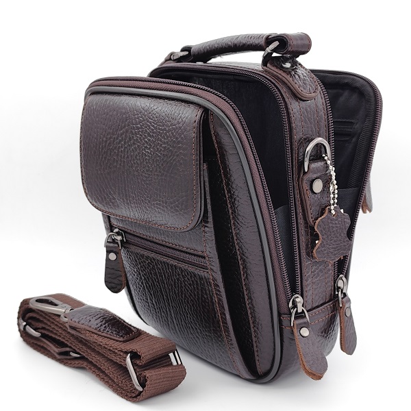 Мъжка чанта от естествена кожа – Кафяв цвят