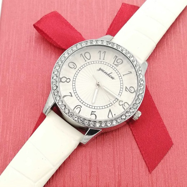 Дамски часовник и гривни в бяло