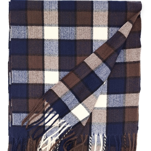 Шал, шапка и ръкавици – кашмирен шал в синьо и кафяво каре, мъжки зимен комплект