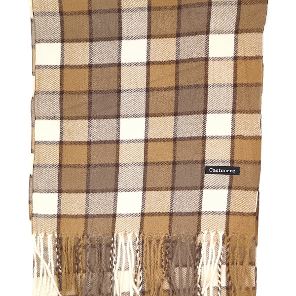 Мъжки шал в бежово на квадрати кашмирен