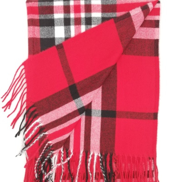 Дамски кашмирен шал в червено с ресни BURBERRY
