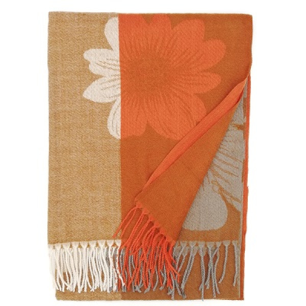 Дамски шал от кашмир в бежово, сиво и оранжево