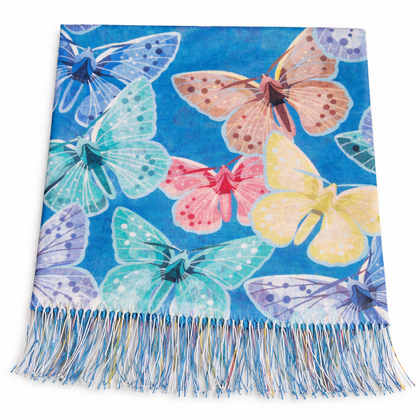 Дамски тънък шал тюркоаз с пеперуди