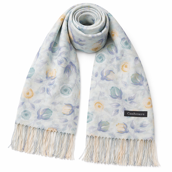 Дамски зимен шал с цветя и ресни-Кашмир