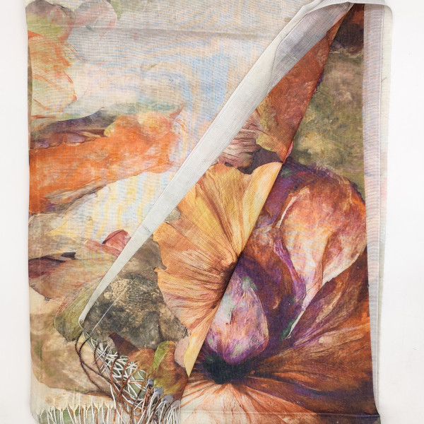 Пролетен шал в бежово с цветя