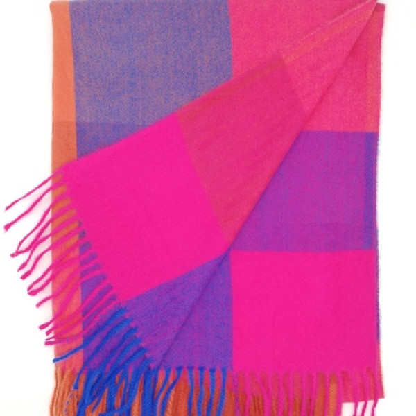 Зимен дамски шал от кашмир на квадрати многоцветен