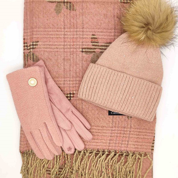 Шапка шал и ръкавици в розово-Дамски комплект за зимата