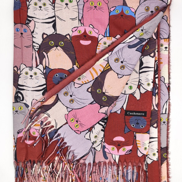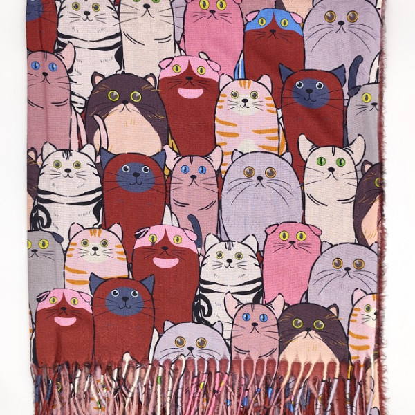 Стилен дамски комплект с котки-Шал, шапка и ръкавици в бордо