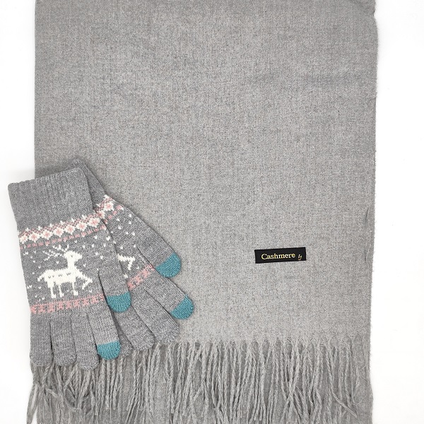 Комплект шал и ръкавици в сиво –Луксозен зимен подарък за жена