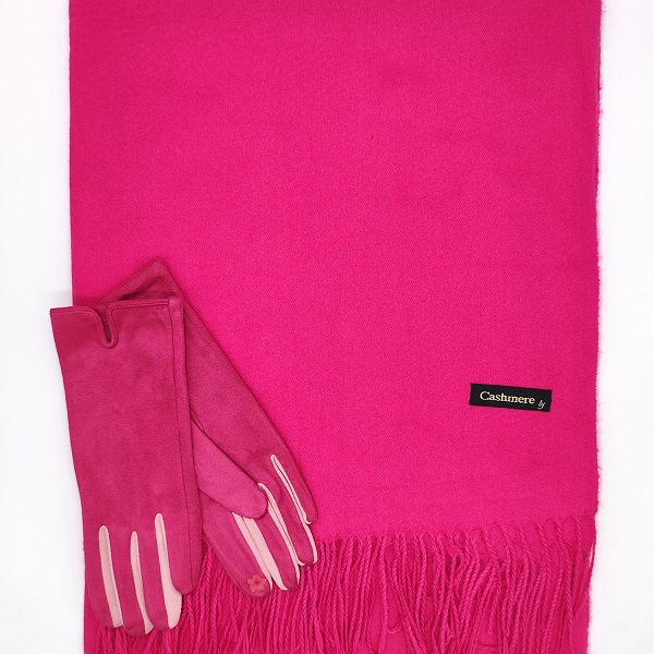 Цикламен зимен комплект-Шал с ресни и ръкавици с цветни пръсти