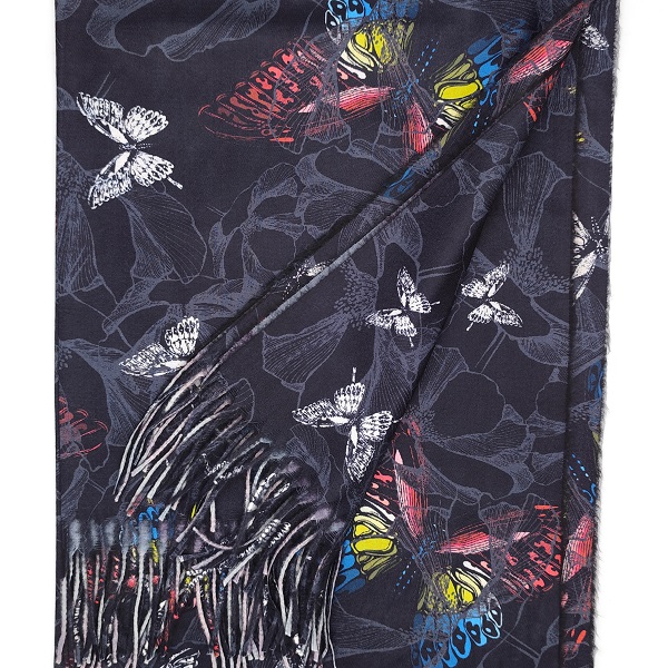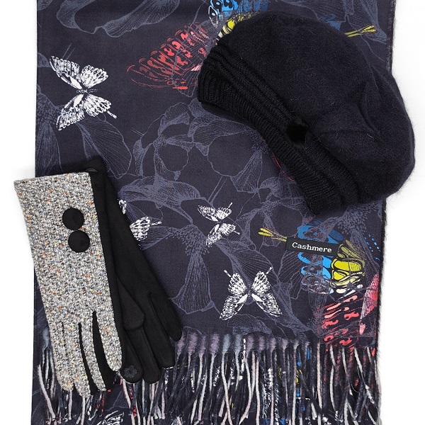 Зимен комплект с пеперуди-Кашмирен шал, барета и ръкавици с копчета