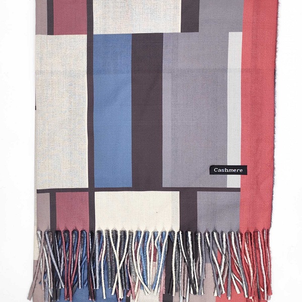 • Дизайн: Многоцветен правоъгълен шал с декоративни ресни