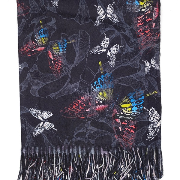 Дамски луксозен комплект кашмирен шал с пеперуди, шапка и ръкавици – стил и уют за зимата